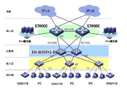H3C S7000E推出了以IRF2为代表的软件虚拟化技术,提供2台主机的协同工作、统一管理和不间断维护功能;IRF2不仅成为交换设备高性能、虚拟化的关键技术,而且对于传统企业网应用,IRF2所提供的高可靠性和无缝升级、扩展能力,也成为H3C用户增值服务的重要组成部分;另外H3C 的IRF2虚拟化技术还可根据组网的要求支持长距离(80KM)的普通以太网万兆光纤堆叠。