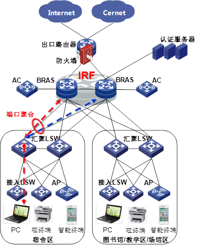 H3C BRAS支持iTA(智能靶向计费),通过访问的目的地址来区分不同的业务流量,提供不同的带宽、计费、Qos策略等,满足高校用户对访问校内网、Cernet、Internet等不同速率不同计费策略要求;提供有线无线统一认证解决方案,通过大容量BRAS满足海量用户终端接入需求,同时满足无线终端的移动性需求和无感知认证需求;BRAS IRF功能在满足冗余热备的基础上可以简化运维工作。